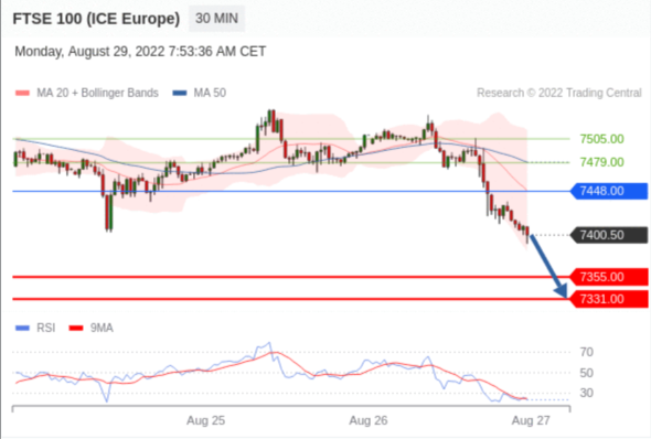 交易策略: 在 7448.00 之下,看跌,目标价位为 7355.00 ,然后为 7331.00 。