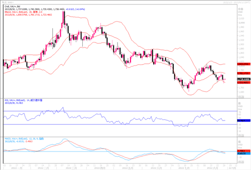 技术图形上,黄金昨日下探回升收高,亚盘开盘弱势下跌,刷新近期新低位至1720美元|盎司,欧美盘时段受消息面刺激,低位回升快速收复失地。并创新日内高点至1745.尾盘收盘在1738附近。日线收成小阳K线。日线依旧处于争夺当中,昨日尾盘没能收低,今日短线还将继续震荡,而美元的强弱也将较大程度影响黄金的最近方向,短线或许还将陷入宽幅震荡,震荡的区间或集中在1700-1765之间。