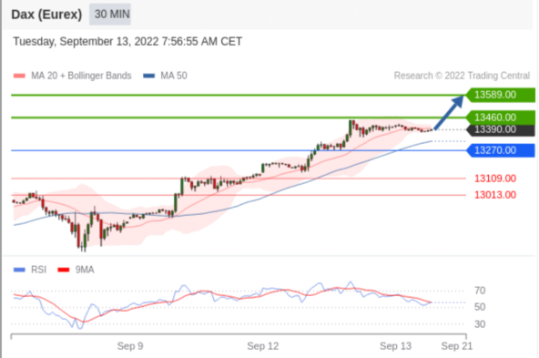交易策略: 在 13270.00 之上,看涨,目标价位为 13460.00 ,然后为 13589.00 。