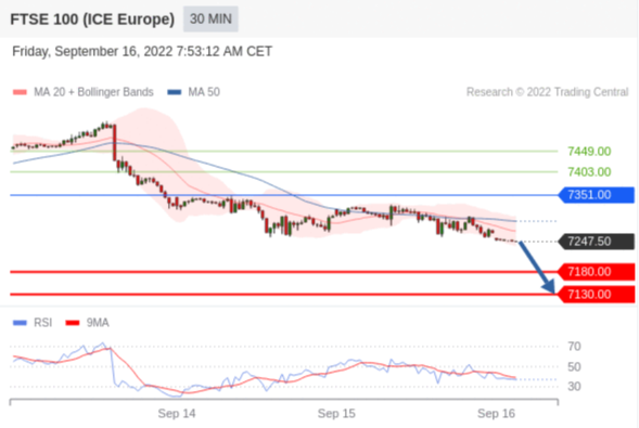 交易策略: 在 7351.00 之下,看跌,目标价位为 7180.00 ,然后为 7130.00 。