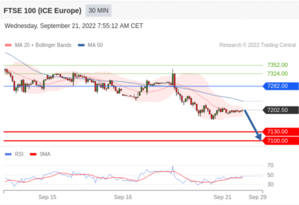 交易策略: 在 7282.00 之下,看跌,目标价位为 7130.00 ,然后为 7100.00 。