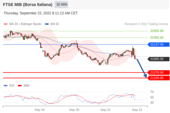 交易策略: 在 22137.00 之下,看跌,目标价位为 21270.00 ,然后为 21100.00 。