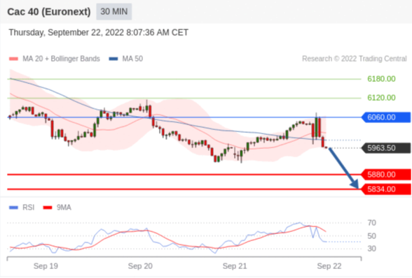 交易策略: 在 6060.00 之下,看跌,目标价位为 5880.00 ,然后为 5834.00 。