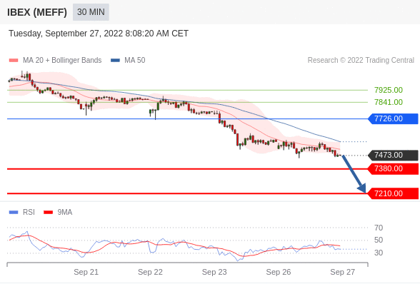 交易策略: 在 7726.00 之下,看跌,目标价位为 7380.00 ,然后为 7210.00 。