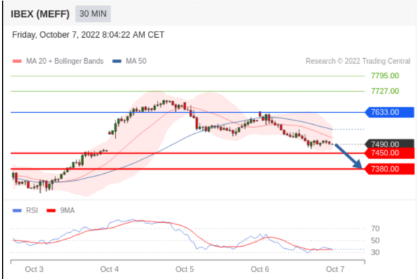 交易策略: 在 7633.00 之下,看跌,目标价位为 7450.00 ,然后为 7380.00 。
