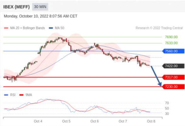 交易策略: 在 7560.00 之下,看跌,目标价位为 7317.00 ,然后为 7230.00 。