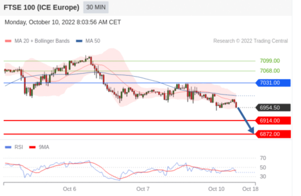 交易策略: 在 7031.00 之下,看跌,目标价位为 6914.00 ,然后为 6872.00 。