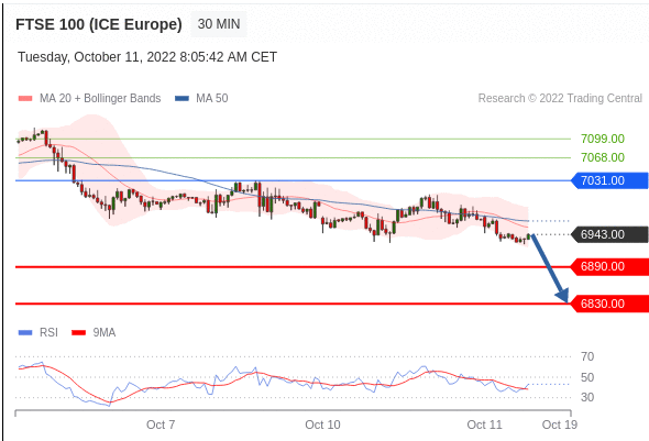 交易策略: 在 7031.00 之下,看跌,目标价位为 6890.00 ,然后为 6830.00 。