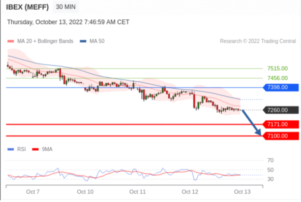交易策略: 在 7398.00 之下,看跌,目标价位为 7171.00 ,然后为 7100.00 。