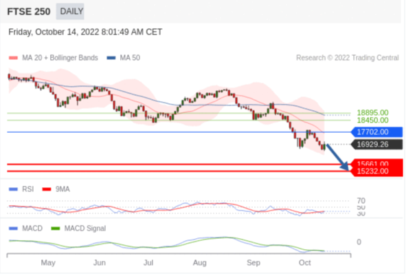 技术点评 : RSI技术指标小于中性区域50。 MACD技术指标呈现看跌状态并 处在其信号线的下方。 此外,价位低于其20天及50天移动平均线 ( 分别位于 17638.12 和 18772.61 )。