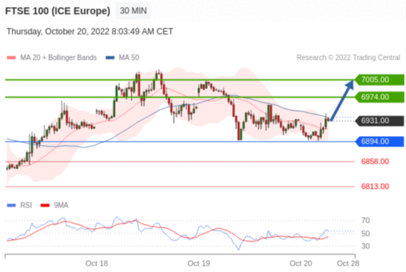 在 6894.00 之上,看涨,目标价位为 6974.00 ,然后为 7005.00 。
