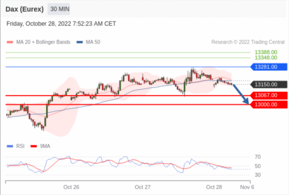 交易策略: 在 13281.00 之下,看跌,目标价位为 13067.00 ,然后为 13000.00 。