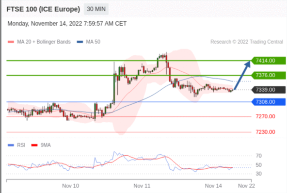 交易策略: 在 7308.00 之上,看涨,目标价位为 7376.00 ,然后为 7414.00 。