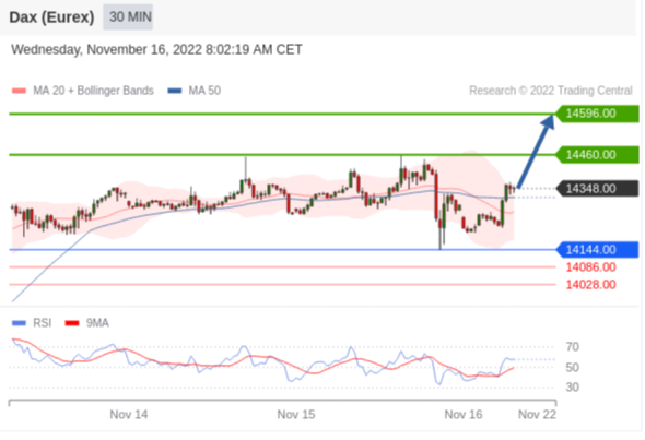 交易策略: 在 14144.00 之上,看涨,目标价位为 14460.00 ,然后为 14596.00 。