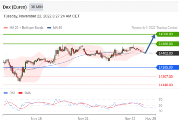 交易策略: 在 14285.00 之上,看涨,目标价位为 14480.00 ,然后为 14560.00 。