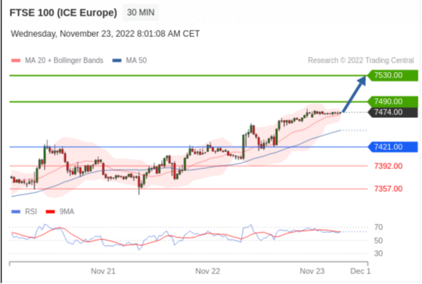 交易策略: 在 7421.00 之上,看涨,目标价位为 7490.00 ,然后为 7530.00 。