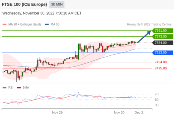 交易策略: 在 7523.00 之上,看涨,目标价位为 7573.00 ,然后为 7591.00 。