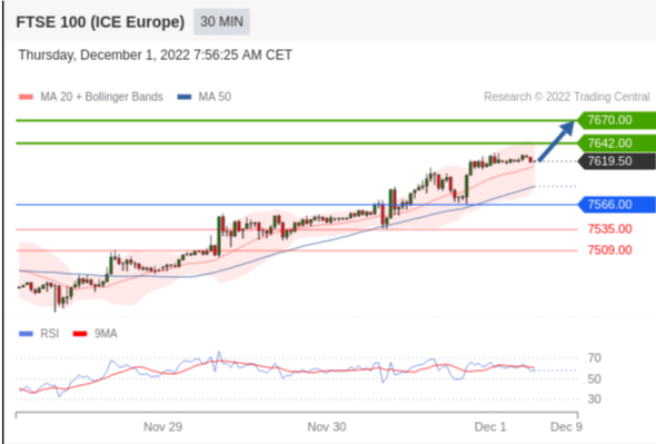 交易策略: 在 7566.00 之上,看涨,目标价位为 7642.00 ,然后为 7670.00 。
