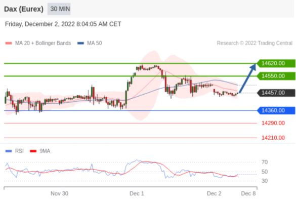 交易策略: 在 14360.00 之上,看涨,目标价位为 14550.00 ,然后为 14620.00 。