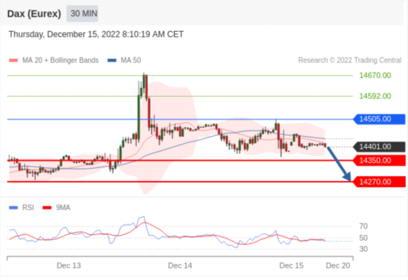 交易策略: 在 14505.00 之下,看跌,目标价位为 14350.00 ,然后为 14270.00 。