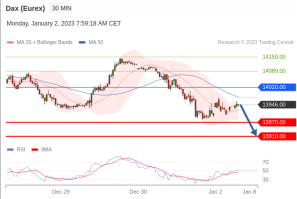 交易策略: 在 14020.00 之下,看跌,目标价位为 13870.00 ,然后为 13810.00 。
