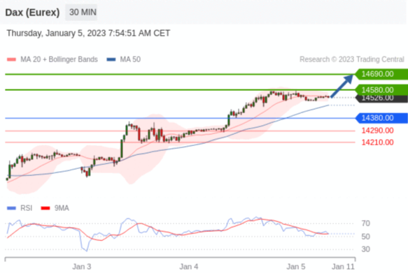 交易策略: 在 14380.00 之上,看涨,目标价位为 14580.00 ,然后为 14690.00 。