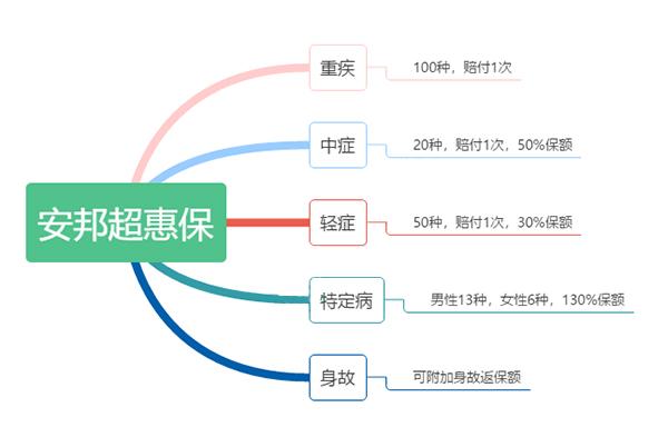 蛰伏许久之后,安邦人寿拿出了自己的新产品:超惠保重疾险。 总的来看,差强人意。 不能说不好,但是整个产品的定位并不清晰,缺乏特点,略显仓促。 具体原因,我们先看产品。 安邦超惠保保什么 牌面上看,超惠保符合目前主流重疾险的特征:包含中症、轻症,可以附加成人特定病保障。 安邦超惠保