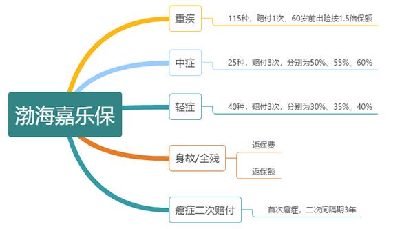 渤海嘉乐保,是由渤海人寿承保的一款单次重疾险,备案名称为“渤海人寿前行无忧终身重疾险”,以下我们简称为渤海嘉乐保。 本文将从保障和价格两方面对渤海嘉乐保进行深度测评,逐一条款分析产品的优点和不足,并与同类产品进行横向测评分析。 一、渤海嘉乐保重疾险保什么 渤海嘉乐保的保障分为两部分,必选保