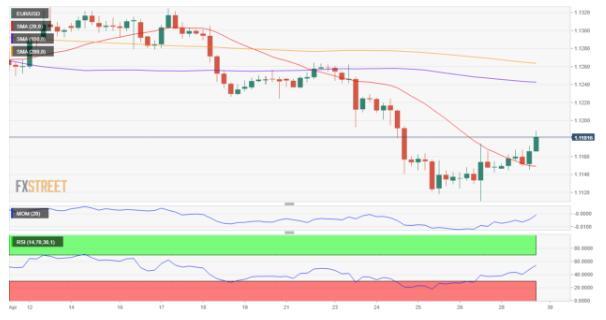 周二(4月30日)国外财经网站FXtrt首席分析师Valriadarik撰文就欧元、英镑、日元以及澳元的最新走势进行了分析。 欧元/美元 周初市况清淡,主要货币窄幅波动。美国疲软通胀令美元承压,欧元/美元涨至1.1186,接近近期跌势的38.2%回档位。周一公布的欧美数据均不佳,欧元区4月经济景气指数跌至104.0,低于预期
