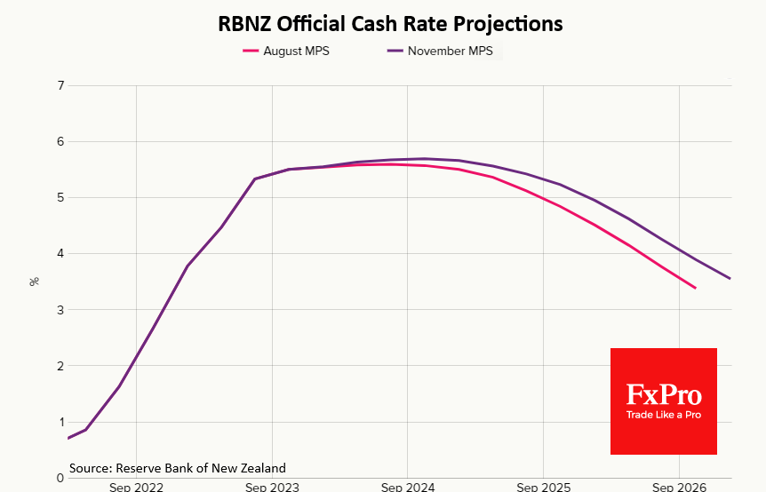 新西兰储备银行(RrvakofwZalad)将关键利率维持在5.5%不变(这是15年来的最高水平),但目前已经维持了6个月。这一决定符合市场预期。然而,纽元兑美元反弹,涨幅超过1.2%,触及4个月高点0.6200。这种购买冲动来自于央行口头上准备在必要时加息。新西兰央行的利率预测变得更加强硬,证实了愿意采取行动的意愿。该