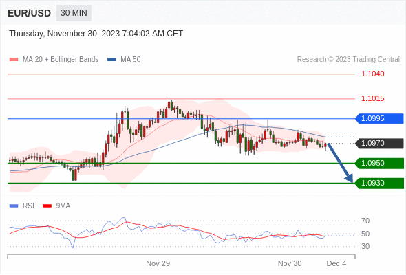 欧元兑美元周四加速下跌,迫使欧元兑美元自1.10上方进一步回落,并重新回到1.0920区域或一周低点。 另一方面,在美国国债收益率温和回升的背景下,美元指数(DXY)回升至103.00关口上方。 德国劳动力市场的数据令人失望,11月份失业率升至5.9%,失业人数增加了2.2万人,这进一步削弱欧元。 目前的货币政策保持