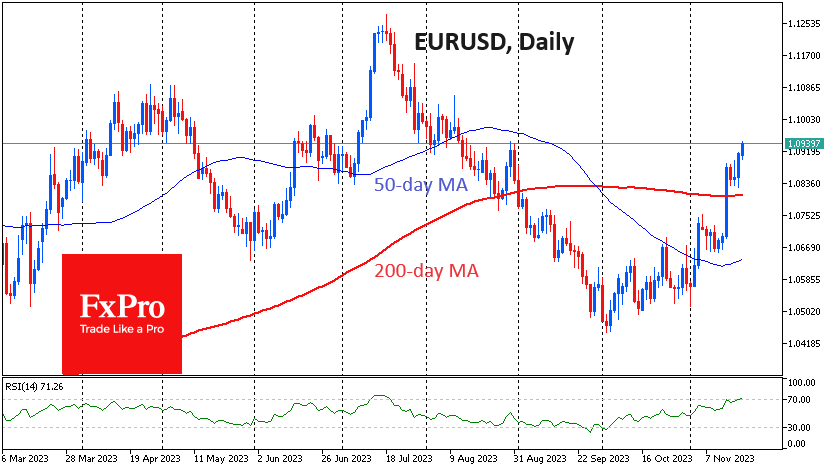 周一欧元/美元上涨至1.0950附近的新高,为8月底以来首次。 与此同时,美元指数在欧市早盘依然处于守势并测试了关键的200日A均线103.60区附近。 在美联储(Fd)可能于2024年春季降息的猜测不断升温的背景下,美国国债收益率小幅波动,美元持续回落。上周公布的通胀指标(CI和I)弱于预期,加剧了这种猜测。