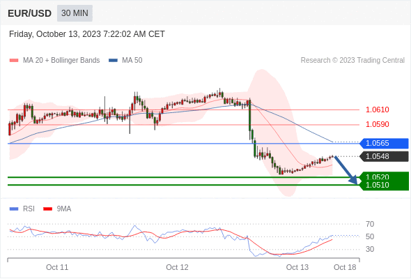 欧元/美元在欧洲时段短暂回调至1.0550附近后回落。由于中东紧张局势加剧以及美联储(Fd)年底前再加息一次的预期有所增强,美元吸引力提高,欧元/美元面临激烈抛售。 美元指数(DXY)强劲回升至106.60附近,并有望进一步扩大,因为美国与其他经济体不同,具有很强的韧性,其他经济体正在努力消化央行提高利率所带来