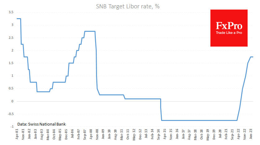 瑞士央行将关键利率维持在1.75%。平均来看,市场一直预测加息25个基点,与我们的预期相反。 Fxro高级分析师AlxKutikvich指出:最有可能的原因是,市场参与者的预测受到了一周前欧洲央行加息的影响。此外,预期中的瑞典和挪威的政策收紧确实真正发生了。但有一些事情使瑞士有别于其他欧洲国家。 首先是通