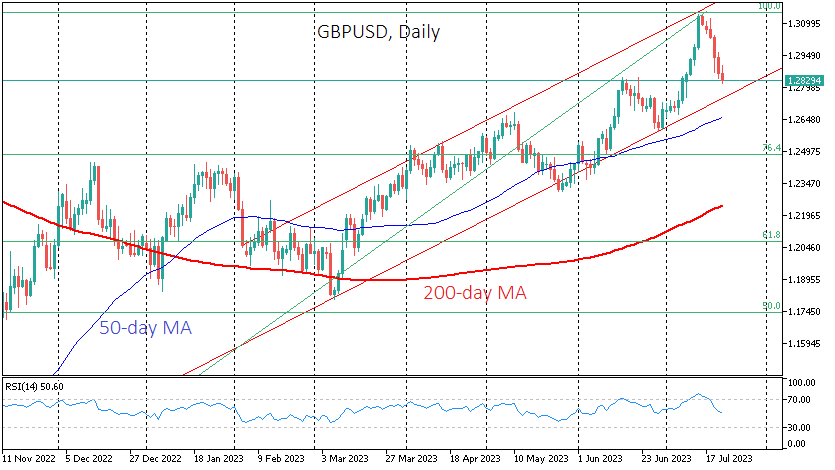 英镑已经连续6个交易日下跌,下跌2.2%至1.2850。从6月30日开始的9个交易日的反弹开始回调,但在本周早些时候公布疲弱的通胀数据后,其下行速度加快。 周五,强劲的零售数据未能扭转英镑兑美元的下跌趋势。伦敦交易时段前公布的数据显示,本月总销售额增长0.7%(预期增长0.2%),连续第三个月增长。去年同月,降幅