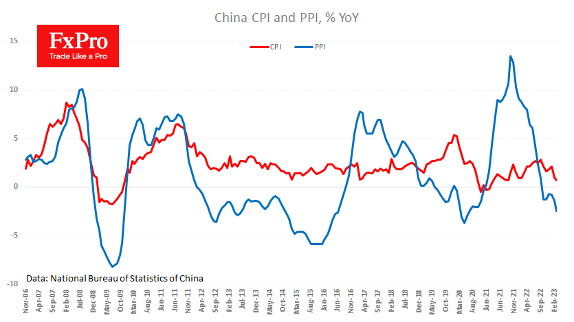 中国3月份消费者通货膨胀率同比下降至0.7%,低于上月的1.0%。上月的生产者价格指数(I)较去年同期下降2.5%,由2月份的1.4%加速下滑。 Fxro高级分析师AlxKutikvich指出:中国放开新冠的政策是在压低价格,而不是像发达国家那样推高价格的假设仍然有效,在这种情况下,我们看到的是经济的正常化,反过来印证了前