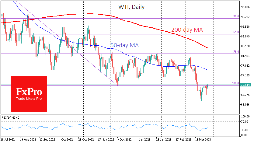 WTI石油周一回到70美元以上,自当天开始以来上涨了2%以上。目前的短期冲动是停止从伊拉克库尔德斯坦经土耳其的出口。在被广泛超卖之后,后者可能是更广泛的油价复苏的一部分。 Fxro高级分析师AlxKutikvich指出:上周油价最终跌破65美元,为2021年11月以来的最低水平。原油的抛售已经停止在技术上的关键水平