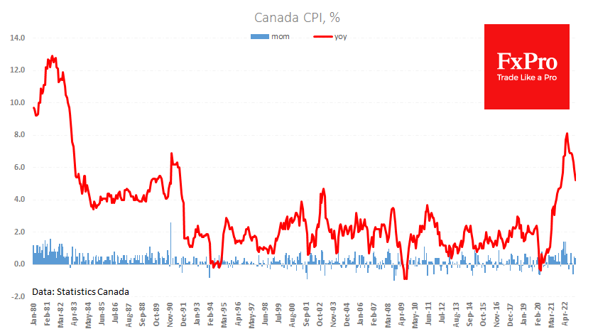 加拿大2月份消费者价格上涨0.4%,年通胀率从5.9%降至5.2%。这两个数字分别低于预期的0.5%和5.4%,反映出经济恢复正常的速度快于经济学家的预期。 Fxro高级分析师AlxKutikvich指出: 除去燃料和食品的消费者价格指数同比下降至4.7%,这是自去年1月以来的最低水平,尽管月度增幅为0.5%。 年通货膨胀率