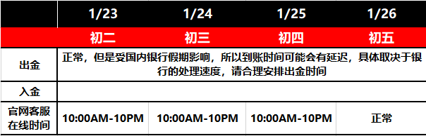 兔年大吉,新春快乐!X在这里给您拜个早年!受中国2023年春节的影响,X出入金和客服时间安排如下,请您合理安排您的出入金和仓位。 X集团 了解更多,即刻访问X官网:htt://www.xfx.arkt/gw.h?gid=155717