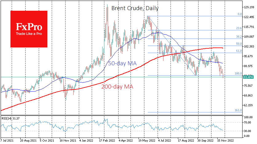 周一,由于对中国防疫措施导致的需求的担忧,石油价格下跌超过3%。美国已向雪佛龙(Chvro)颁发在委内瑞拉生产石油的许可证的消息也不容错过。 西德克萨斯中质油(WTI)价格周一跌破74美元,布伦特原油(rt)价格暂时跌破81美元,创下11个月来的最低水平。石油对全球供需波动非常敏感,因此,即使是有关潜在供需变化的