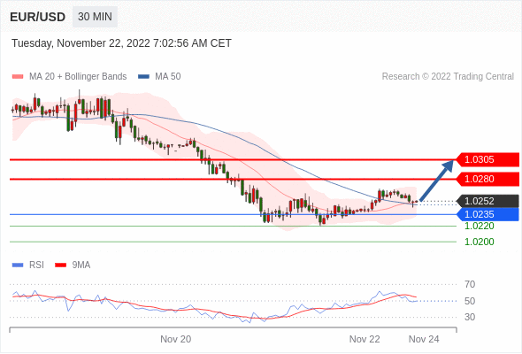 11月23日星期三投资者需要注意的事项: 在全球股市表现转好、美国国债收益率走弱的环境下,美元周二小幅走低。然而,周三美联储会议纪要和美国耐用品订单公布之前,市场活动有限。 亚洲和欧洲各大股指收高,而美国股市则大幅上涨,在最后几个小时的交易中涨幅最大。另外,美债收益率小幅走低,10年期国债收益率下降