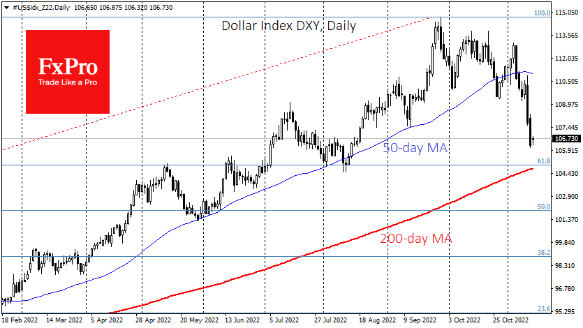 美元指数上周下跌了4%,这是自2020年3月以来的最大跌幅。这种与趋势相反的强劲走势往往预示着趋势的进一步逆转。然而,它可能是一个较慢的下降速度,而不是我们在过去10天看到的单行道趋势。 Fxro高级分析师Alx?Kutikvich指出:过去两周,美元面临的压力有所加剧,原因是市场猜测美联储将放慢政策收紧的步伐,本