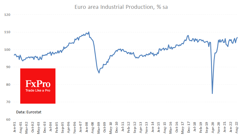 根据最新估计,欧元区9月份工业生产同比增长0.9%,同比增长4.9%。数据比预期的好得多,月率为0.1%,年率为2.8%,表明尽管能源价格高企,欧元区经济并不急于陷入衰退。 Fxro高级分析师Alx?Kutikvich指出:经季节调整的指数处于近5年来的最高水平,仍处于多年全球经济停滞的框架内。该行业恢复活力的明显原因是,