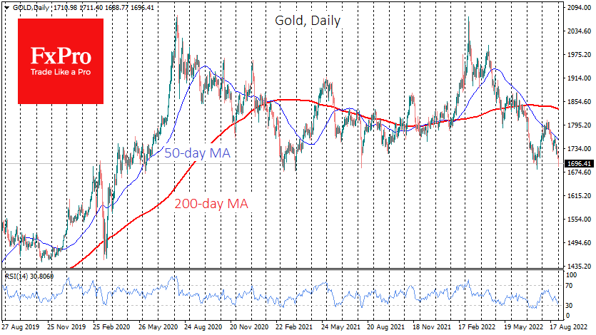 金价周四跌破1700美元,接近其2020年5月以来交易区间的下边界。在此期间,黄金在情绪上向下边界下跌后,一直在寻找买家。 Fxro高级分析师Alx?Kutikvich指出:长期看空情绪的主要原因可能是美国的鹰派货币政策。大幅收紧政策和美联储加息承诺,已将两年期政府债券收益率推至2007年的水平。 短期债券收益率高企