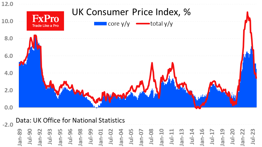英国的消费者通胀数据略低于预期,但这并没有明显缩短降息日期。 Fxro高级分析师AlxKutikvich指出:消费者价格指数(CI)在1月份出现了类似的下跌之后,2月份上涨0.6%。年通货膨胀率从4.0%降至3.4%,低于预期的3.5%。核心CI在连续三个月稳定在5.1%之后,2月份同比增长放缓至4.5%。 服务业价格的上涨推动了