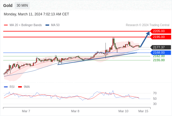 继2月份的非农就业数据公布后,美元重新获得了一些新的上行动力,并将美元指数自近期的多周低点拉升,同时在本周一使与风险相关的市场面临一些下行压力,而这一切都发生在3月12日美国公布关键通胀数据之前。 以下是3月12日星期二投资者需要了解的信息: 周一,美元指数(DXY)小幅反弹至103.00关口附近。3月12日,