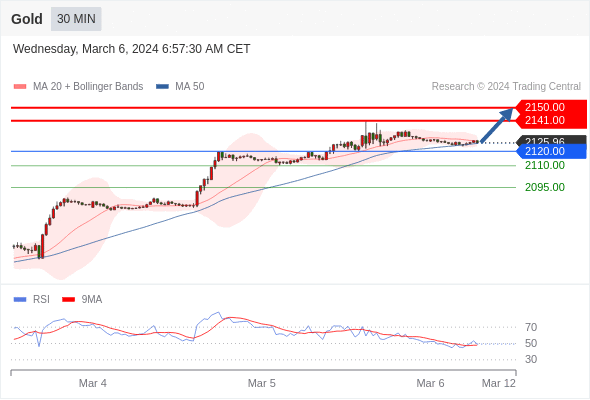 金价继续走高,无视美联储主席鲍威尔的鹰派言论。 由于2月份的I数据让人们对美国强劲的经济前景产生怀疑,美元的吸引力减弱。 美国AD显示,2月份私人就业人数为14万,预期为15万。 周三纽约早盘,黄金价格(XAU/UD)在2,140.00美元附近保持坚挺,因美国AD研究所报告2月民间就业人数低于市场预期。美国私人雇