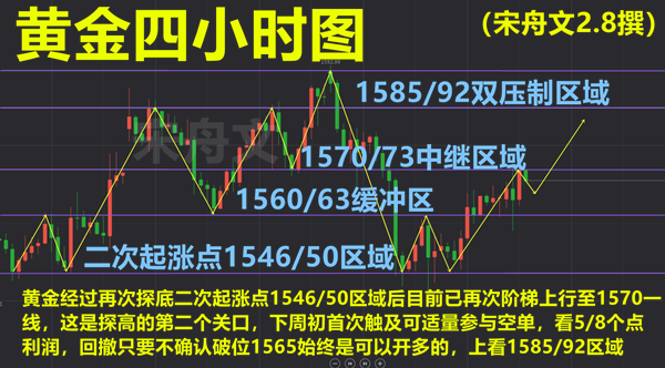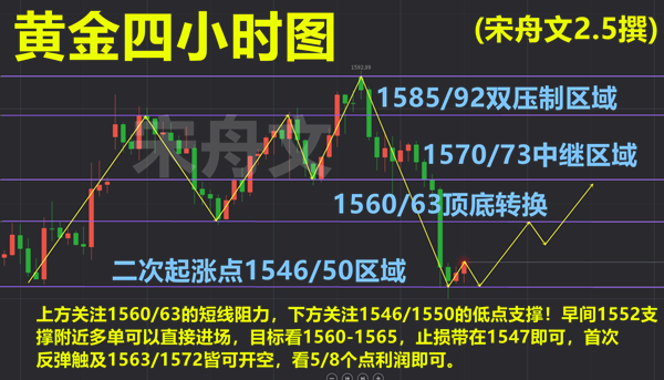 为人师者,每天从早到晚盯盘熬夜,耗尽精力和心血,想要得到的,无非也就是看到客户盈利后开心的模样而已---宋舟文 昨日黄金如预期震荡测压至1577附近,后半夜行情有所震荡回修,日线最终收得一阳十字星,整体走势符合预期。日线结构上,目前行情已经连续4日收阳,但均是小阳状态,表明多头动能有衰减的