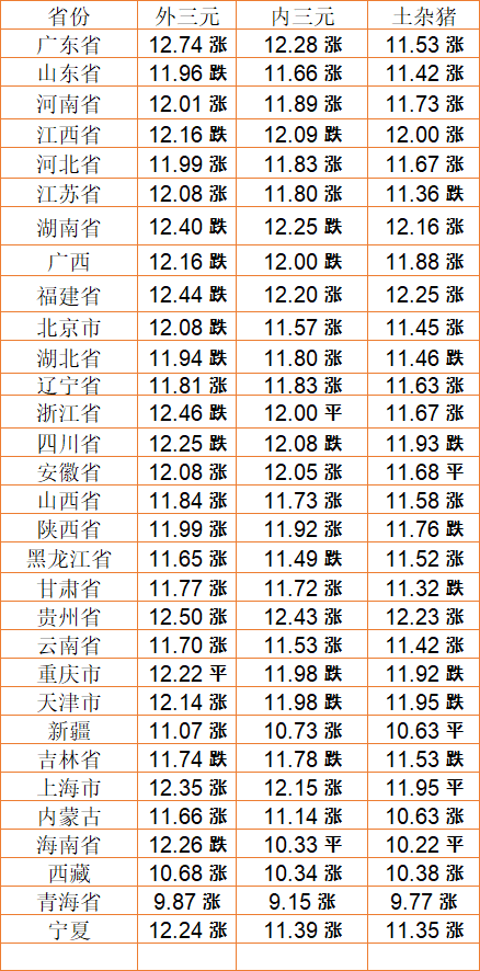 猪肉价格今日价(2022年9月22日) 备注:以上猪肉价格仅供参考,请以官方价格为准。(亚汇网编辑:陌尘)