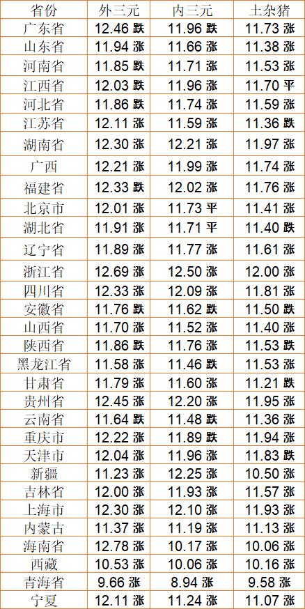 猪肉价格今日价(2022年9月19日) 备注:以上猪肉价格仅供参考,请以官方价格为准。(亚汇网编辑:陌尘)